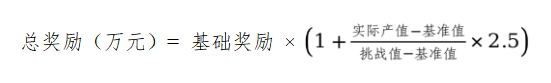 ②基准值≤实际产值≤挑战值:按公式计算;